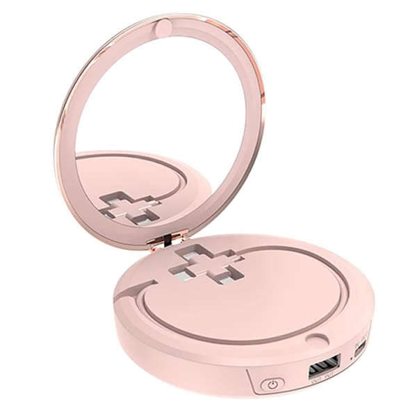Praktische make-upspiegel, handwarmer en stroombron voor je elektronische apparaten in één schattig modeaccessoire. Het compacte formaat maakt hem perfect voor dagelijks gebruik in je handtas.